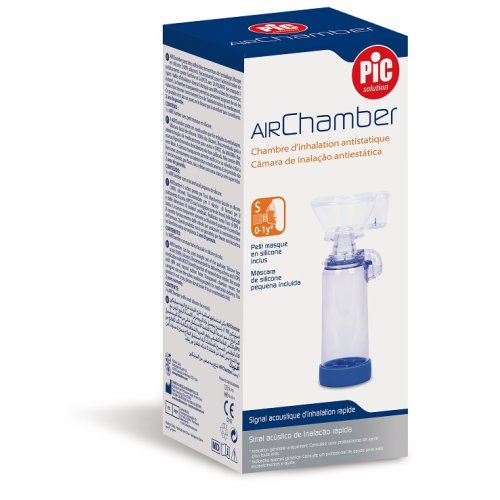 L'AIRChamber aiuta a: ridurre al minimo gli errori di coordinamento nell’uso degli inalatori predosati evitando il deposito di grandi quantità di farmaco nell’area orofaringea e gli effetti collaterali indesiderati ad esso associati grazie a un adattatore di collegamento flessibile che può essere utilizzato con tutti gli inalatori predosati convenzionali.